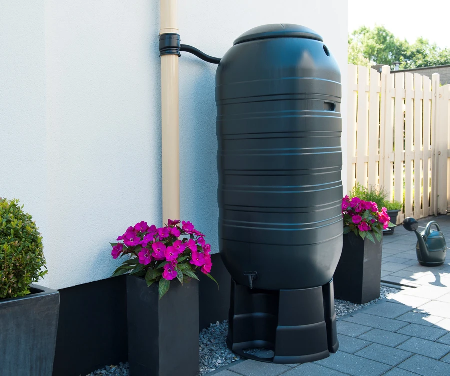 Kunststof regenton 250 L muurmodel (‘slimline’). Deze regenton is gemaakt van uv-bestendig, groen polyethyleen en heeft een kraan om makkelijk emmers en gieters te kunnen vullen. Afmeting: H 121 cm x 54 x 50 cm, inhoud: 250 L.