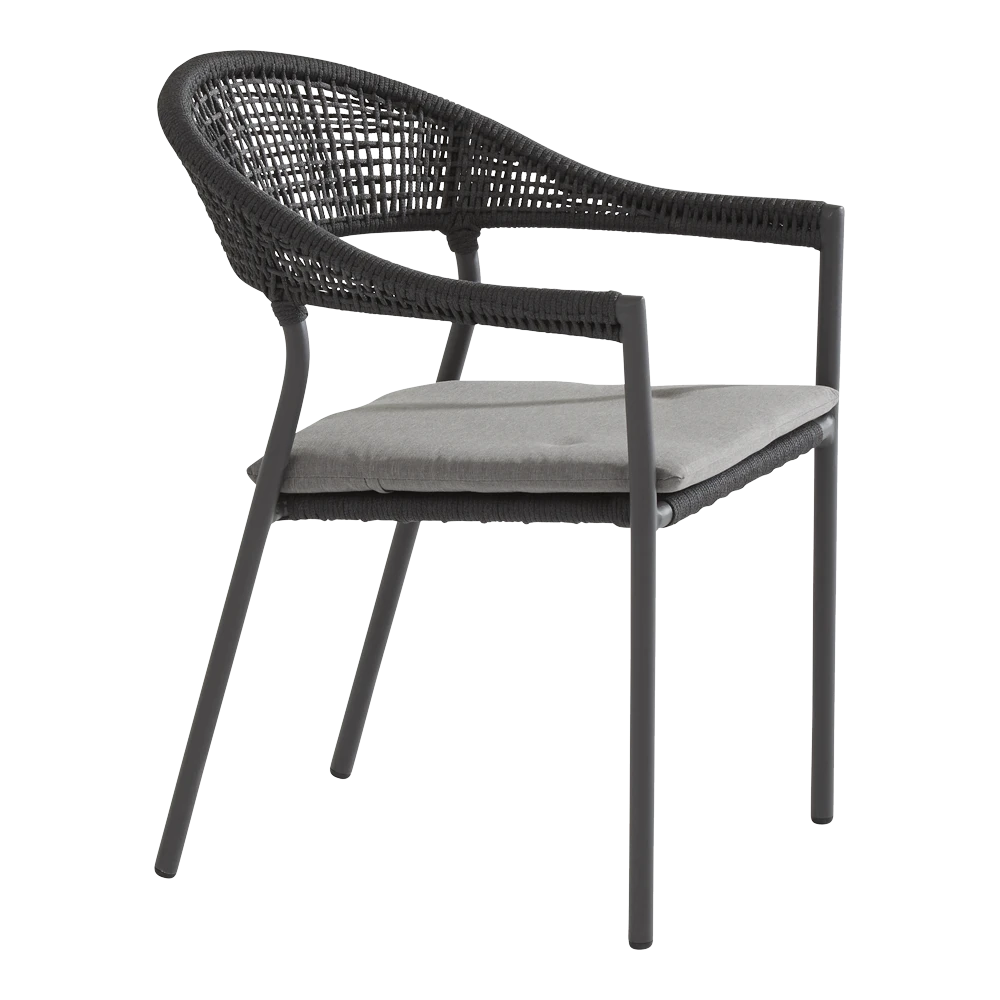 Heerlijk buiten genieten met de Taste by 4 Seasons Outdoor stapelbare Sienna Dining stoel. Deze stijlvolle grijze dining tuinstoel is stapelbaar en heeft een afmeting van 81x62x59cm, waardoor ze niet veel ruimte in beslag nemen om op te bergen. De Sienna dining stoel is gemaakt van RVS en weerbestendig touw. De tuinstoelen van Taste 4SO worden geleverd met 5 jaar garantie en inclusief kussen. Het kussen is gemaakt van hoogwaardig All Weather materiaal, waardoor ze op de stoelen kunnen blijven liggen bij een regenbuitje. Het droogleggen van de kussens raden wij echter aan om een langere levensduur van de kussens te hebben.